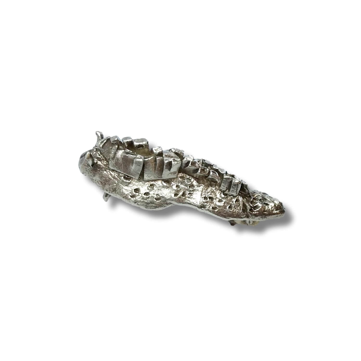 Textured sterling silver. Unique sculptural animal shaped brooch inspired by marine fauna, with different fun textures handmade in sterling silver using the ancient lost wax casting technique. Animal brooches are very trendy and fun to wear to hold your scarf in place or on your jacket/coat lapel. TOTAL LENGHT 5,4 cm x 1,0 cm · 2,12 x 0,39”