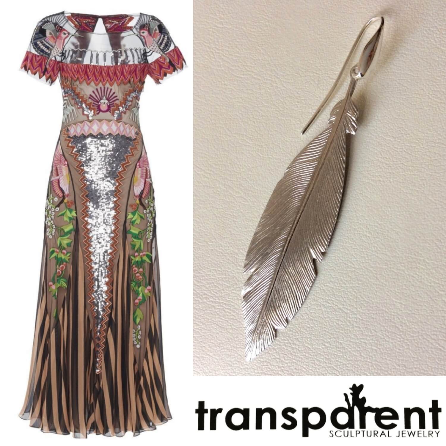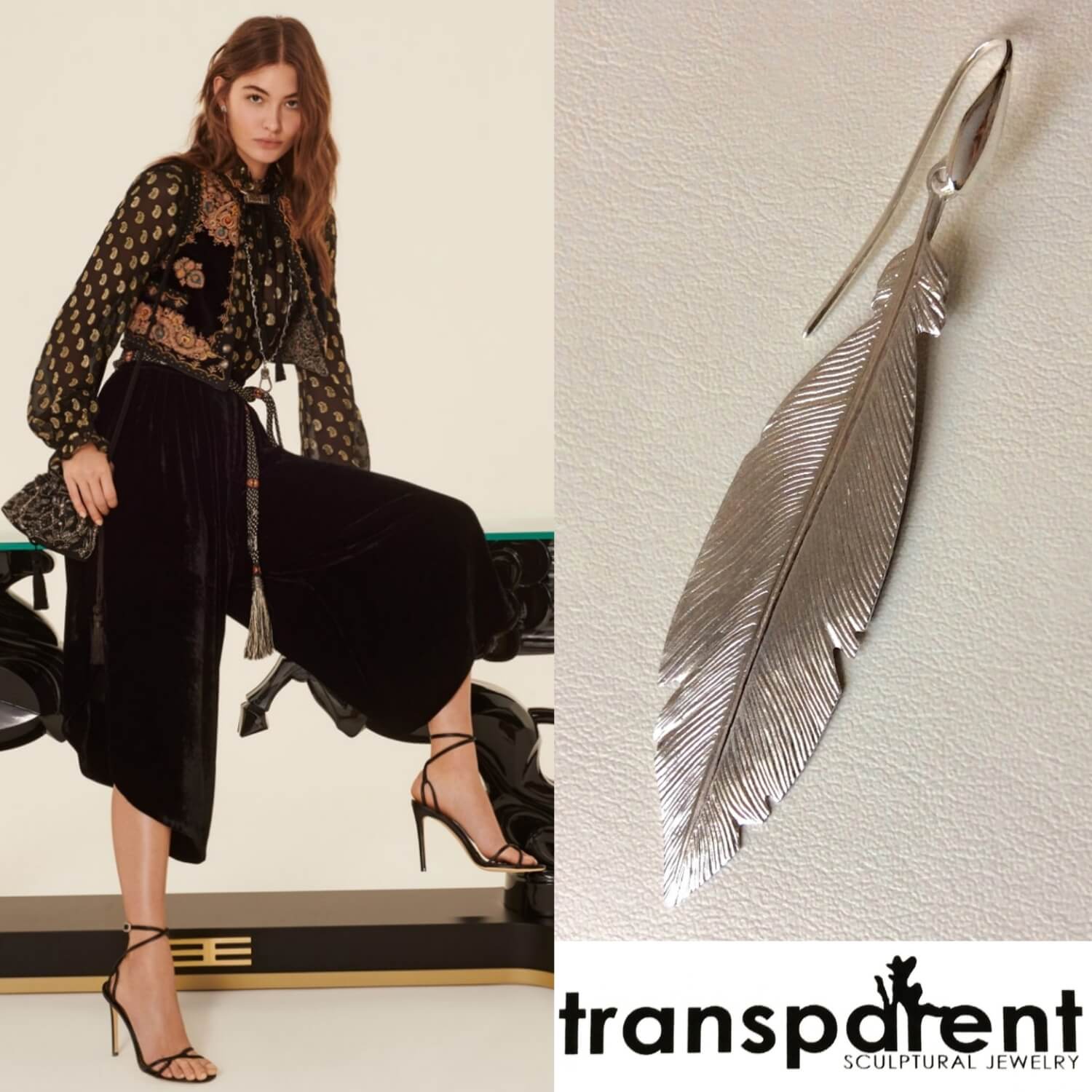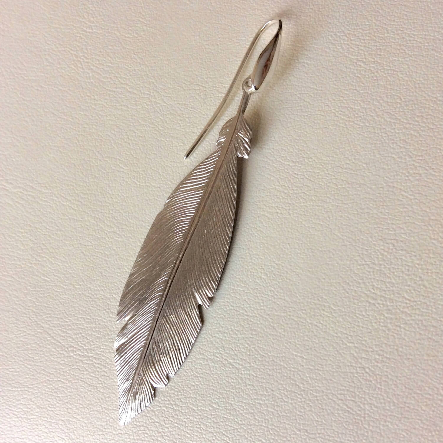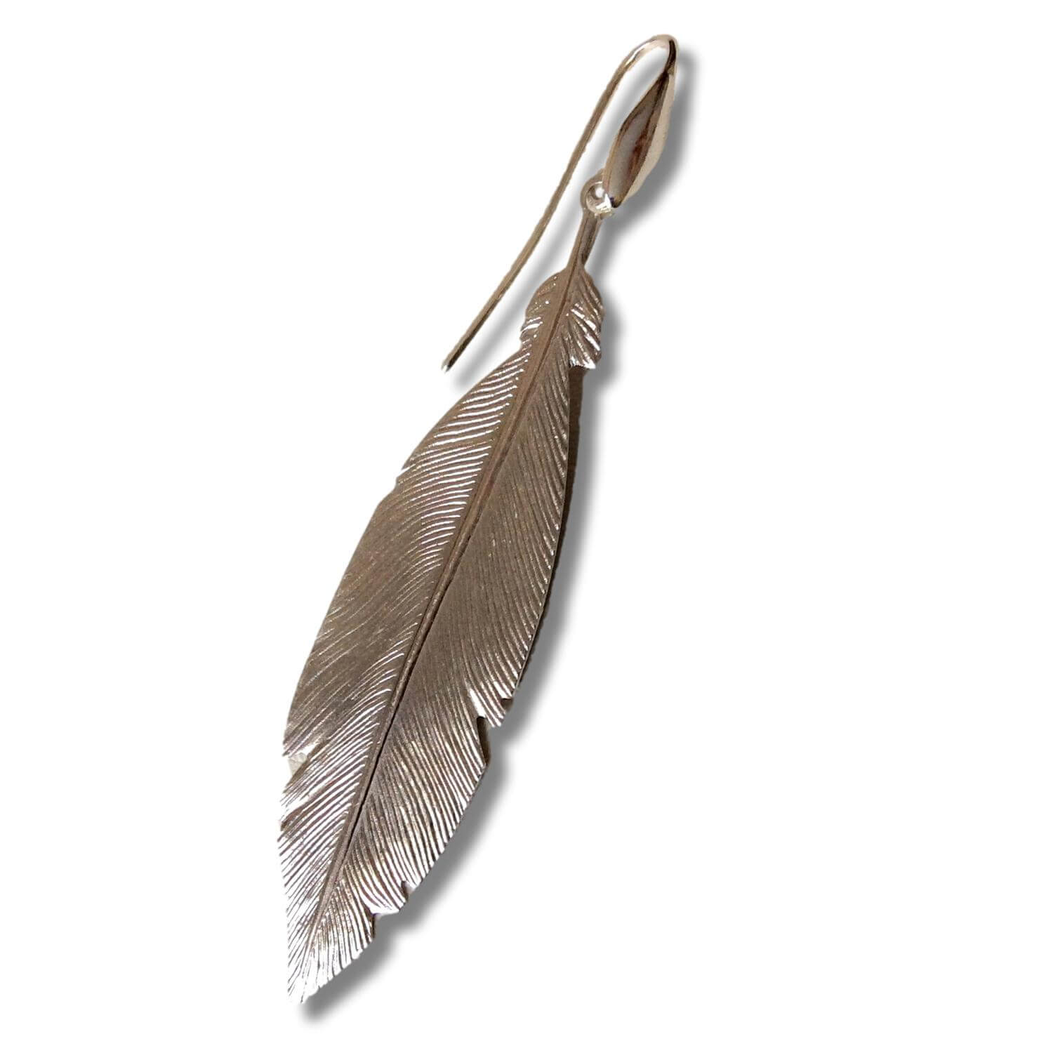 Single sterling silver XL feather earring. Special single large feather earring made in sterling silver, for a boho-chic look. Very detailed.